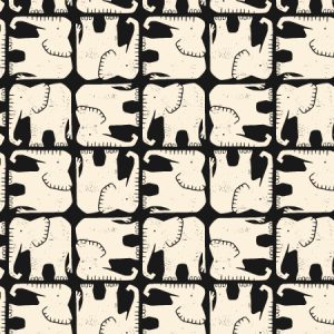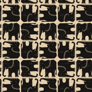 Cotton+Steel – Loes van Oosten – Rising Sun – Jolly Elephant in Black (Unbleached Canvas)