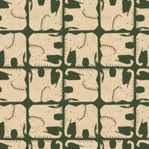 Cotton+Steel – Loes van Oosten – Rising Sun – Jolly Elephant in Hunter (Unbleached Canvas)