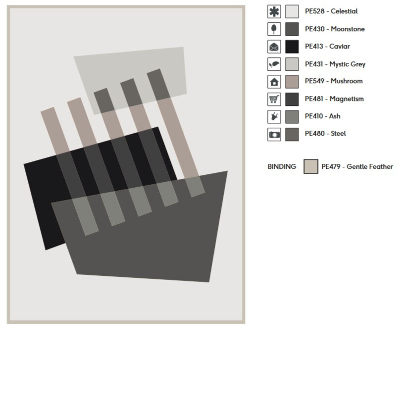 Du hast die Wahl zwischen vier Rückseitenstoffen (Rückseite A: Bark Stamps Shadow – AbstrArt | Rückseite B: Chaotic Ink – AbstrArt | Rückseite C: Peppered Cotton – Granite | Rückseite D: Morning Horizon Cool – AbstrArt)