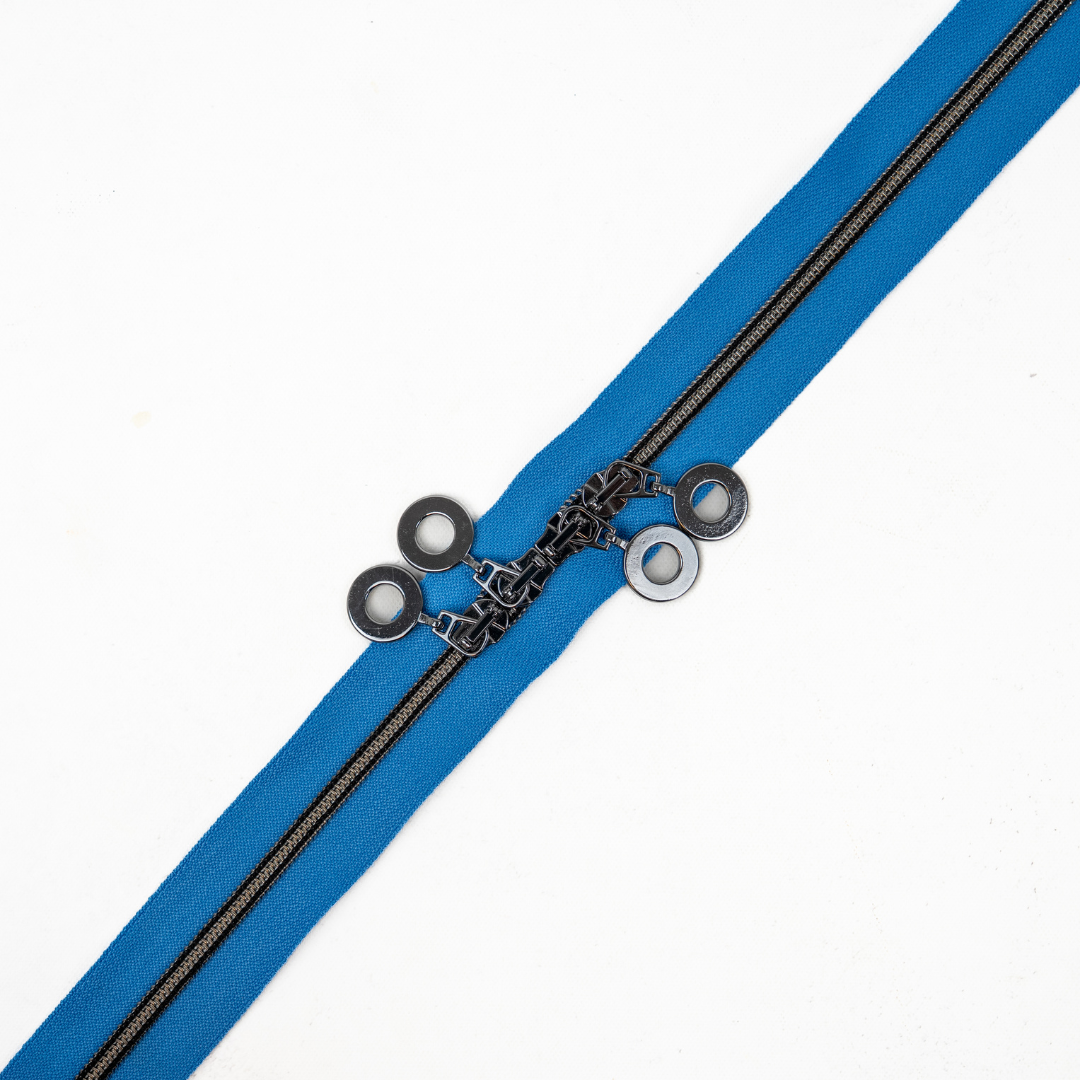 Diese Qualität metallisierender Reißverschlüsse ist schwer zu finden. Die Schieber sind hochwertig gearbeitet und einzeln legiert. Jeder Reißverschluss im Set ist 120 cm lang, es sind je vier Schieber aufgezogen. Du kannst den Reißverschluss einfach auf die benötigte Länge zuschneiden.