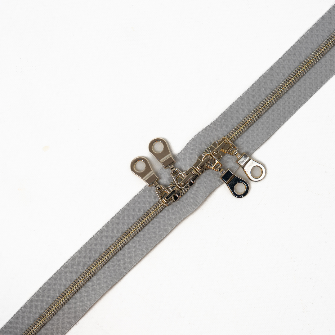 Diese Qualität metallisierender Reißverschlüsse ist schwer zu finden. Die Schieber sind hochwertig gearbeitet und einzeln legiert. Jeder Reißverschluss im Set ist 120 cm lang, es sind je vier Schieber aufgezogen. Du kannst den Reißverschluss einfach auf die benötigte Länge zuschneiden.